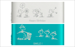 本体カラーはブルー、ライトピンク、ホワイト、ビビッドピンク、ブラックの5色を用意(4GBモデルはブルー、ライトピンク、ブラックの3色)。刻印できるデザインは、さまざまなスタイルのスヌーピーを描いた「SNOOPY」、「ASTRONAUT」、「WORLD FAMOUS ATTORNEY」、「JOE COOL」、「BEAGLE SCOUT」の5種類から選べる。