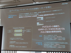 技術解説を担当した東芝デベロップメントエンジニアリングの桑原光孝氏は、「ハイレゾというと高域の伸びや透明感だけが特徴と思われがちな節があるが、ボーカルの厚みや奥行きが変わってくるのが正しいハイレゾであると考えている」と設計にあたっての考えを示していた。