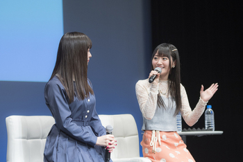 そんなワクワクがいよいよ高まってきたところで、イベントがスタート。大きな拍手とともに迎え入れられた上坂さん、小倉さんがそれぞれ元気よく挨拶をするが、2人が並んだ時点で姉妹オーラが感じられる。