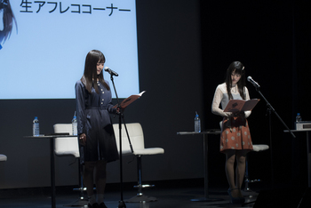 さて、これが最終コーナーだったのだが、少し時間があまったようで、司会から「最近どうです?」と雑談を振られる2人。急な転換に慌てながらも、小倉さんが大学を卒業できることに話題が移ると会場からは祝福の拍手が。お互いの大学生活を振り返るなかで、9時から授業を受けるのは大変だった、同じくらいで始業する会社には務められない、声優で良かった!という論法を展開。「頑張って生活費を稼いでいこうね!」と意気込みを新たにしていた。