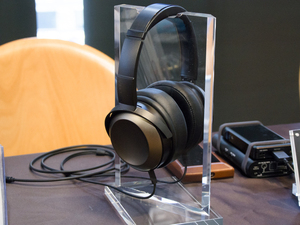 過去のイベントではデザインモックのみ参考出展されていたヘッドホン「HPT-700」は、音が実際に聴ける状態の試作機が登場。ハウジングにチタン、バッフルにアルミを採用。ハウジング部には魔法びんに使われている真空技術を応用した真空二重構造を用い、クリアなサウンドや軽量化を実現しているという。