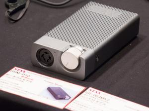 STAXブースでは、同社静電型ヘッドホン専用のDAC内蔵ポータブルヘッドホンアンプ「SRM-D10」が初公開された。USB入力はPC/Android/iOSに対応しており、PCM 384kHz/24bit、DSD 5.6MHzまでのフォーマットに対応。小型のイヤースピーカーから大型のヘッドホンまで駆動することができる。