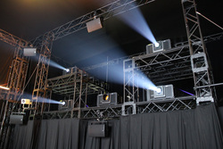 8K映像の投写には、パナソニック用の業務用4Kレーザープロジェクターを4台使用。8K映像の出力には、アストロデザインの8K対応インターフェースコンバーター「FC-8216A」を用いた。