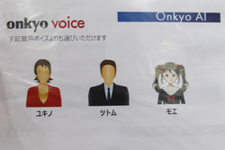 コンシェルジュの声が変更できる「Onkyo VOICE」機能を備えることも特徴だ。今回のデモでは「ユキノ」「ツトム」「モエ」と3種類の声が用意されていて、例えば「声をユキノに変更して」と話しかければ声が変更される。