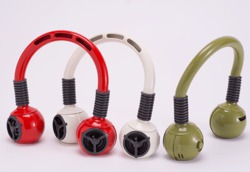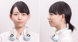 首からかけて音楽を再生することで、自転車に乗っているときなどでも音楽が楽しめるというポータブルBluetoothスピーカー。首かけだけでなく、机などに設置してデスクトップスピーカーとして用いることも可能となっている。