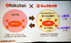 さらに、楽天が有する女性や若年層も含めた市場全体のニーズと、ビックカメラの持つ家電に対するニーズを掛け合わせて、オリジナルブランド商品の開発も予定しているという。「双方の強みを組み合わせることで、両社の競争力や集客の向上、さらなる事業拡大へ繋げてきたい」とした。
