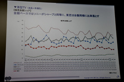 金額シェアは、直近ではシャープとソニーがほぼ並んだ。これはソニーが大型テレビの販売において大きなシェアを獲得しているためだ。