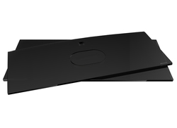 ブラック仕上げの強化ガラスの採用と厚み19mmのスリム設計で、テレビの外観を損なわないスタイリッシュなデザインを採用したテレビ回転台。対応するレグザの下に設置することで、左右約20度の角度調整が可能となる。