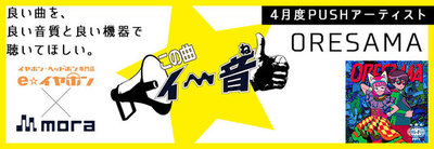 レーベルゲートが運営する音楽ダウンロードサービス「mora」とe☆イヤホンは、楽曲/アーティストの共同プロモーション企画『この曲 イ〜音(このきょく い〜ね)』を4月21日から開始。初回の“PUSHアーティスト”には音楽ユニット「ORESAMA」が選出された。