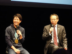 ひかりTVイベントではその後、透明な板に投映された東京スカパラダイスオーケストラの映像に合わせたダンサーのパフォーマンスが行われたり、NTTぷららがスポンサードしている選手によるトークショーも開催。平昌冬季パラリンピック スノーボード男子金メダリストの成田緑夢さん、FC今治オーナーの岡田武史さん、さらにウインドサーフィン オリンピック特別強化選手の新嶋莉奈さんが登壇した。