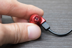 ケーブルとイヤホンの接続端子には、カスタムIEM 2pin端子を採用。ケーブルは、銅メッキ導線を圧縮して平らにした状態で、繊維素材であるケブラーに巻き付けた独自のイヤホンケーブルを用いている。これにより、取り回しの良さと高い伝送能力を両立させたという。プレーヤー側のプラグは3.5mmステレオミニ端子となる。