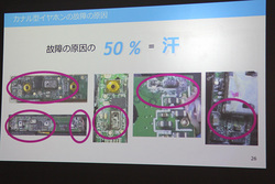 Gao氏はまず、Soundcoreの独自技術である「SweatGuard」について詳しく紹介した。Gao氏によると、イヤホンの故障の原因の50%が汗なのだという。このため同社では、イヤホン内部へ汗を進入させないようにする技術を開発した。これには潜水艦の構造を参考にしたのだという。