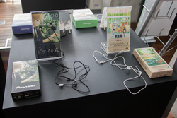 オープン時点では、ハイレゾスマホ「GRANBEAT」の『ガールズ&パンツァー』モデル、イヤホン「SE-CH9T」の『マクロスデルタ ワルキューレ』モデルをはじめ、イヤホン「SE-CH3T」の『ピアノの森』モデルや『リズと青い鳥』モデルなど、人気アニメとのコラボモデルを多数展示。人気ゲームアプリ『A3!(エースリー)』とコラボしたBluetoothイヤホン「SE-C7BT」も用意されていた。いずれも手にとって試聴することが可能だ。