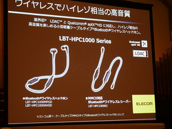 エレコムは「2018 春のヘッドホン祭」会場において、LDAC/aptX HD両対応のケーブル一体型Bluetoothヤホンと、MMCX対応のBluetoothケーブルを発表した。