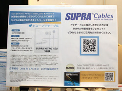 また、アンケートに答えるとその場でSUPRA特製付箋がもらえるキャンペーンと、SUPRA製品を体験してTwitterで感想を呟いた人の中から抽選で5名にSUPRAのイヤホン「NiTRO(白)」が当たるキャンペーンも実施している。