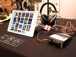 伊藤屋国際のブースでは、SHANLINGの手のひらに収まる小型ハイレゾプレーヤー「M0」をイベント初出展したいた。従来機「M1」から38%の小型化を実現し、本体サイズは40W×45H×1.35Dmm、質量はわずか38g。コンパクトだが、最大でPCM 384kHz/24bitまでをサポートし、DSD 64までのネイティブ再生にも対応する。