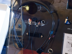 開発中の製品として、3Dプリンタで製作したばかりというダイナミック型1基の試作機を出展。音はこれから調整していくということだが、現在はいわゆるドンシャリの状態で展示している。発売時期などは未定だが、低価格帯に投入する予定とのこと。