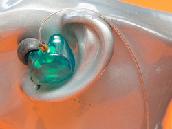 今回の最新モデルはAKG「N5005」に対応するカスタムイヤーピース。ハーマンインターナショナルブースでも、本製品を装着したN5005デモが用意されていた(関連ニュース)