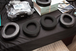 独自の交換式イヤーパッドやイヤーピースを手がけるDEKOI AUDIOは、プロテインレザーやベロア、シープスキン、穴あきタイプなど様々な素材や形状を用いたイヤーパッドを展示していた。