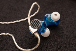 NGS audioのブースでプッシュされていたのは、中国・深圳のカスタムIEMブランド「MUM」のハイブリッド型イヤホン「Galileo-D4」だ。ダイナミックドライバー×1+BAドライバー×2という構成で、木材と金属を組み合わせたハウジングも特徴。外見からわかるとおり基本的にはオープン型となっているが、通気口はダイナミックドライバーの背圧を逃すことに特化していて、音漏れはわずかだという。片側あたり32個のパーツで構成されており、全て手作業で組み上げられる。価格は52,800円だが、ヘッドホン祭では49,800円の特別価格で販売されていた。