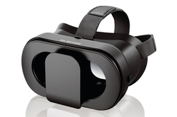 P-VRGF01はスマートフォンと組み合わせ、専用アプリも用いてVRコンテンツの視聴ができるVRグラス。取り付けはスライド式で、4.0 - 6.0インチのiPhone/Androidスマホに対応する。