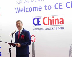 ハイテッカー氏は壇上で「CE Chinaが毎年ここシンセンで開催されるようになってから、徐々にその認知が浸透してきた手応えがある。これからの中国のエレクトロニクス市場の発展に貢献できることをうれしく思う」と語り、主催者であるメッセ・ベルリンとして、出展社と来場者の双方に最高のミーティングポイントを提供する考えを伝えた。