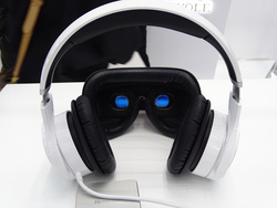本体に搭載する液晶ディスプレイの解像度はフルHD。ノンシースルータイプのヘッドマウントディスプレイなので、明るく色鮮やかな映像を楽しむことができた。ディスプレイにヘッドホンも一体にしたオールインワンデザインだが、バッテリー内蔵のメディアプレーヤーは別筐体としている。