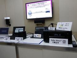 また、ラインアレイスピーカーとサブウーファーによるシステムや、ステレオスピーカーで22.2ch音響再生を再現するバーチャルサラウンド技術もデモ。ラインアレイスピーカーによるシステムはシャープとの共同開発によるもので、「実用化できるとすれば2020年以降になるだろう」(説明員)とのことだった。