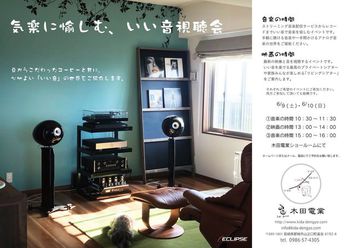 宮崎県・(株)木田電業は、6月9日(土)・10日(日)の2日間、ECLIPSEのスピーカーを通じて「良い音」と「コーヒー」を愉しむイベント「気楽に愉しむ、良い音視聴会」を開催する。