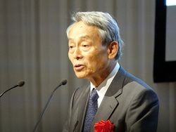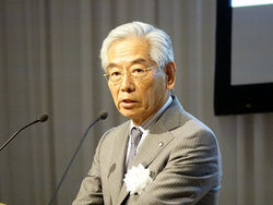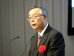 野田大臣に続いては、NHKの上田良一会長、民放連の井上弘会長、JEITAの安木成次郎氏があいさつ。NHKの上田会長は12月1日にイタリアからの8K生中継を行うことや4Kでは南極からの中継を行うことなどを紹介しながら、「普及拡大は魅力的なコンテンツをどれだけ充実させられるかがカギだ。超一流のコンテンツを用意する」と意気込みを語る。