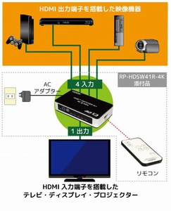 レコーダーやゲーム機などの外部機器を最大4台接続して切り替えてテレビに出力するセレクター。例えばテレビ側のHDMI端子がひとつしか空いていなくとも、本機を利用することで複数の機器を接続できる。なおリモコンも付属する。