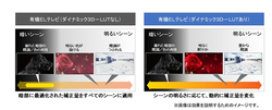 映像処理エンジン「ヘキサクロマドライブ プラス」では、心臓部である3次元カラーマネジメント回路が「ダイナミック 3D-LUT」へと進化。シーンの明るさに応じて動的に補正量を変化させることで、もともと有機ELが得意とする暗部の表現力だけでなく、明るい映像での階調や色を忠実に再現できるようになったという。