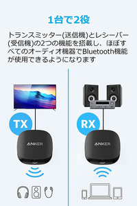 一台でトランスミッター(送信機)とレシーバー(受信機)の両方の機能を装備。テレビやオーディオプレーヤーに本機を接続してBluetoothヘッドホンに音声を送信したり、コンポなどに本機を接続してスマートフォンなどからの音楽を受信して再生するなどといったことができる。なお、トランスミッター/レシーバーの両モードとも、最大2台の機器と接続可能。