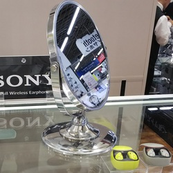 アップルの「AirPods」やソニーの「Xperia Ear Duo」ほか、BOSE、JBL、JVCなど70種以上の機種がすべて試聴でき、装着を試すことができる。ショウケース上はカウンターになっており、卓上ミラーが用意されているのが嬉しい。