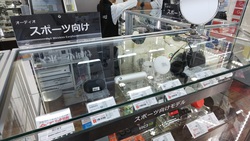 有楽町店の「フルワイヤレスイヤホン試聴カウンター」は、ショーケースを矩形に囲み、ケース内にテーマ別に商品を展示している。テーマはそれぞれ「おすすめBest3」、「スポーツ向けモデル」、「Bluetoothヘッドホン」、「SONYスタイル別コーナー」、「メーカー別最上位モデル」、「エントリーモデル」、「小型軽量」、「iPhone向け」、「首掛けイヤホン」などに分かれている。