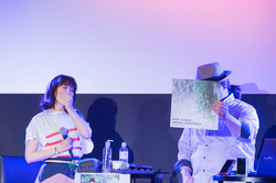 「久しぶりにすごい気持ちいいティンパニの音を聴きました」という中村さんに、TECHNOBOYSと交友のある野村氏は「ピッコロも聞こえたと思いますが、あれはシンセサイザーで作った音なんだそうです。相当加工して生っぽい音を作ったらしいです」と作成秘話を明かした。中村さんが「生を入れちゃえばいいのに!」というと、会場は笑いに包まれた。