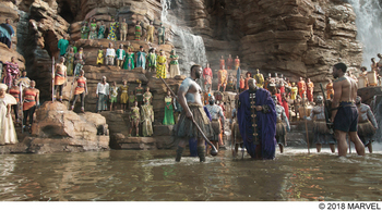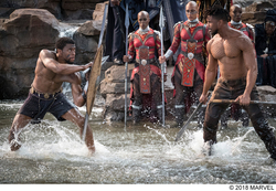 最初のチャプター4では、主人公ティ・チャラがアフリカの小国・ワカンダの国王を継ぐための儀式が描かれる。前半では、一方を切り立った岩壁、もう一方を滝に挟まれた浅瀬で、ティ・チャラと反対派部族の決闘が行われる。武器と武器が打ち合わされる音、周囲で見守る人々が立てる物音の響きを、ドルビーアトモスが立体的に再生する。