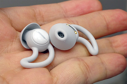 片方のイヤホンは、専用のイヤーチップを外した状態で重さが約1.4g、サイズは約1cm四方。耳に装着し、枕に耳を当てながらベッドに横になっても違和感を感じさせない。さらに安定したフィット感が得られるよう、イヤーチップにはスタビライザーを一体化した本機専用の「StayHear+ Sleep tips」が同梱される。サイズはS/M/Lの3種類、素材は柔らかいシリコン製。ハウジングは密閉型なので、イヤーチップを付けて耳に装着するだけで相当な遮音性が得られる。寝汗をかいても機器が故障しないようイヤホンは防滴加工とした。