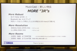 マルチルーム配信機能も強化。登録可能台数は最大32台、リンク(配信)可能な台数は最大20台(有線の場合、無線の場合は最大10台)となった。なお、2015年以降発売の全てのMusicCast対応製品が、ファームウェア更新で同様の仕様となる。