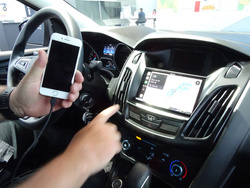 本機は北米で5月から発売されたカーナビゲーションシステム。iPhoneなどiOSデバイス、またはAndroid OSを搭載したデバイスを有線・無線で接続して、マップによるナビゲーションや音楽再生などネットワーク接続を必要とするスマートサービスが手軽に使えるところが大きな特徴だ。例えばファミリーカーやカーシェアリングサービスと相性が良さそうに思う。