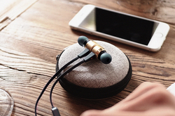 マグネット内蔵でネックレスのように首に掛けることが可能なほか、上記のようにComplyソフトフォームイヤーピースとシリコンイヤーピースが付属。ファブリック製キャリングケースなども付属する。