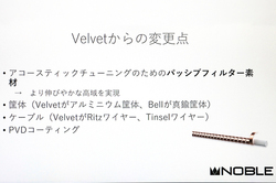 他にも従来のVelvetと異なる点として、アコースティックチューニングのためのパッシブ・フィルター素材を変更。この点はドライバーと同様に重要な要素にあたり、技術の詳細は非公表とのことだが、大きさや配置まで変更しており、Bellではより伸びやかな高域を実現するとのこと。
