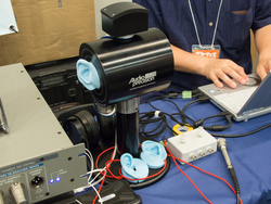 コーンズテクノロジー(株)は、同社が輸入販売を行う米Audio Precision製オーディオ測定器を出展。来場者が持ち込んだヘッドホン/イヤホンを実際に測定し、周波数特性などをモニターで確認できるというデモンストレーションを行っている。