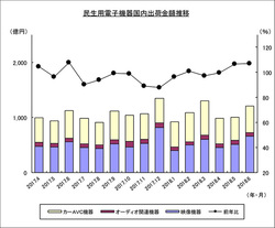 電子情報技術産業協会(JEITA)は、2018年6月の民生用機器国内出荷実績を発表。民生用電子機器の6月国内出荷金額は1,206億円(前年比107.1%)となった。