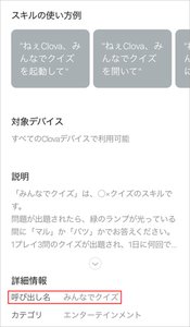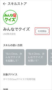 LINE Clovaアプリ内のスキルストアにて使用したいスキルを選択して利用開始することで、開発されたスキルを使うことができるようになる。一部例外を除き、デバイスに直接「ねぇClova、○○○を起動して」と話しかけることで、音声のみで起動することも可能とのこと。