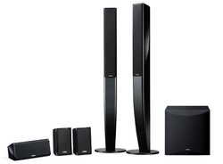 AVレシーバーと組み合わせて使用する、5.1chスピーカーパッケージ。薄型テレビのデザインにマッチするグロスブラック仕上げをフロントスピーカー、サラウンドスピーカー、センタースピーカーに取り入れ、統一感のあるスタイリッシュさを追求したとしている。