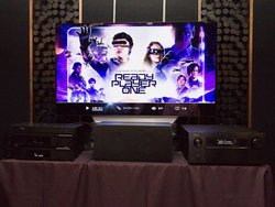視聴会で使用された機材は、プレーヤーがOPPO Digital「UDP-203」、AVアンプがドルビーアトモス対応のDENON「AVC-X8500H」、テレビがLGの4K HDR対応有機ELテレビ「OLED55C7P」。スピーカーは7.1.6chの構成だ。