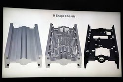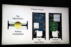 また電源に関しては、本体の上半分がデジタル部、下半分がアナログ部となっており、それぞれ独立した電源部を搭載している。それを実現するのが「H型」のアルミシャーシで、中央のパネルが上下を完全に分離している。