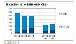 GfKジャパンは、全国の有力家電・IT取扱店の販売実績データ等を基に、2018年上半期(1-6月)の家電およびIT市場の販売動向を発表した。金額面では前年をやや上回り、冷蔵庫や洗濯機、テレビなど主要製品の好調が寄与したという。