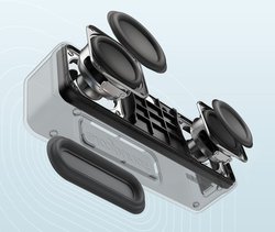 6W×2のフルレンジドライバーと1つのパッシブラジエーターを搭載し、歪みが少なく深みのあるサウンドとのこと。独自のBassUpテクノロジーによりDSPで低音を増幅させることで、力強いサウンドを実現した。